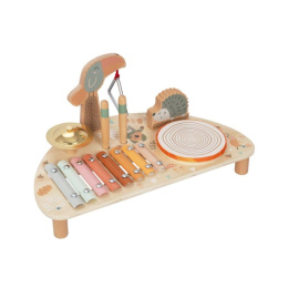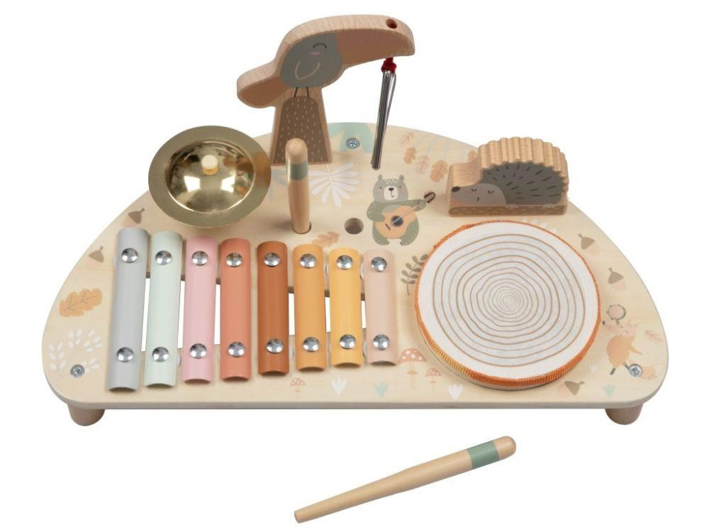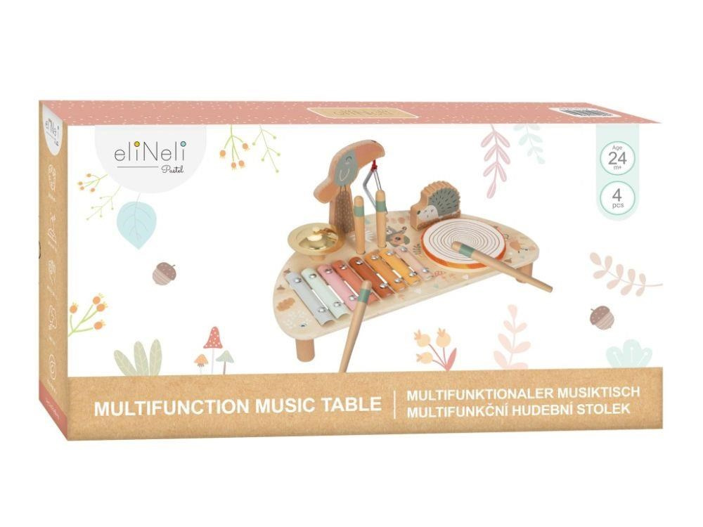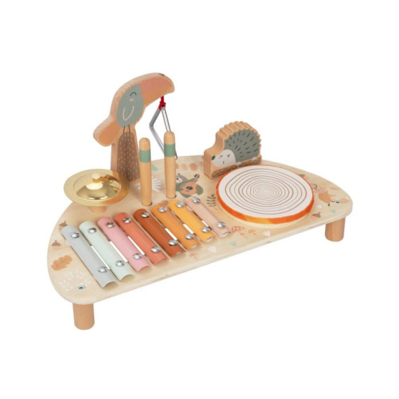 Dřevěný hudební stoleček pro děti se sadou 5 hudebních nástrojů na jednom místě, s krásnou malbou a se zvířátky z lesa, probudí lásku k hudbě v každém dítěti. Hudební stoleček obsahuje základní dětské hudební nástroje, které stimulují smysly, zdokonalují jemnou motoriku, seznámí děti s tím, jaké zvuky který nástroj vydává, jak se na něj hraje..
