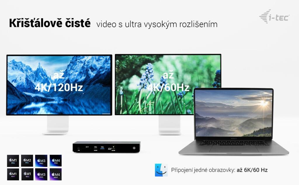 Ultra vysoký výkon, ultrarychlý přenos dat a podpora rozlišení až 8K/60 Hz. Jedna z nejvýkonnějších dokovacích stanic i-tec na trhu!