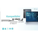 Rozbočovač nevyžaduje instalaci žádných ovladačů, stačí jej připojit kabelem USB a můžete jej ihned začít používat. Rozbočovač má vestavěnou přepěťovou ochranu počítače pro případ zkratu na periferiích. Díky kompaktním rozměrům a nízké hmotnosti jej můžete vždy nosit v tašce – kovový povrch chrání rozbočovač před poškozením a poškrábáním.