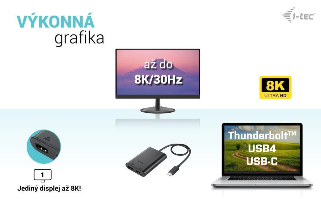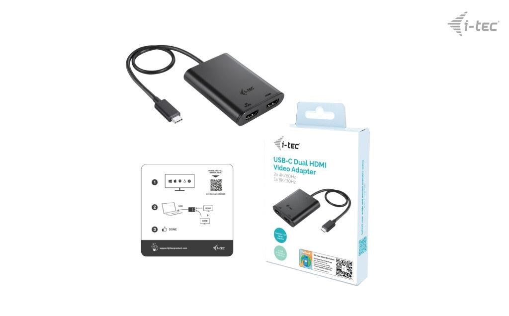 Rozšiřte svůj stolní počítač o dva externí monitory HDMI nebo připojte projektory či televizi k notebooku, tabletu nebo počítači prostřednictvím nového konektoru USB-C nebo Thunderbolt 3. Adaptér podporuje 1x 8K / 30 Hz nebo 2x 4K / 60 Hz*.