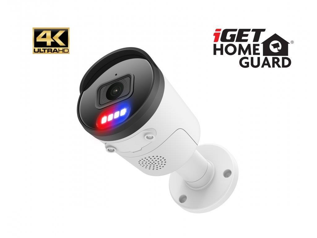 Venkovní odolná Ultra HD 4K (8MPx) kamera iGET HOMEGUARD HGNHK938CAM s obousměrným přenosem zvuku, barevným nočním viděním, sirénou, PoE napájením a SMART AI detekcí pohybu pomocí umělé inteligence, je příslušenství ke kamerovému setu iGET HOMEGUARD HGNVK88504, a také HGNVK84904, HGNVK164908. Rozlišení 4K (3840 x 2160) pro video ve velmi vysoké kvalitě, denní i noční provoz, noční přisvětlení až 40 m, odolnost proti prachu a stříkající vodě IP66. Úhel záběru 110°. LED světla pro výstrahu/svícení a další červeno-modrá LED pro výstrahu. Podpora OnViF (Ver. 2.6, Profile S, Profile G).