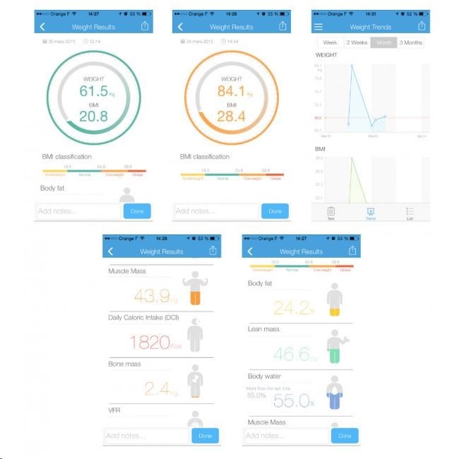 využívá technologii tenké vrstvy ITO a tlakové senzory pro plynulé vyhodnocení složení těla. Výsledky se zobrazují a ukládají na zařízení iOS nebo Android spolu s datem a časem měření.