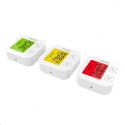 Displej svým podbarvením indikuje závažnost výsledků takto: Optimální tlak – zelená Normální tlak – zelená Mírně zvýšený tlak – žlutá Hypertenze 1. stupně – blikající žlutá Hypertenze 2. stupně – červená Hypertenze 3. stupně – blikající červená