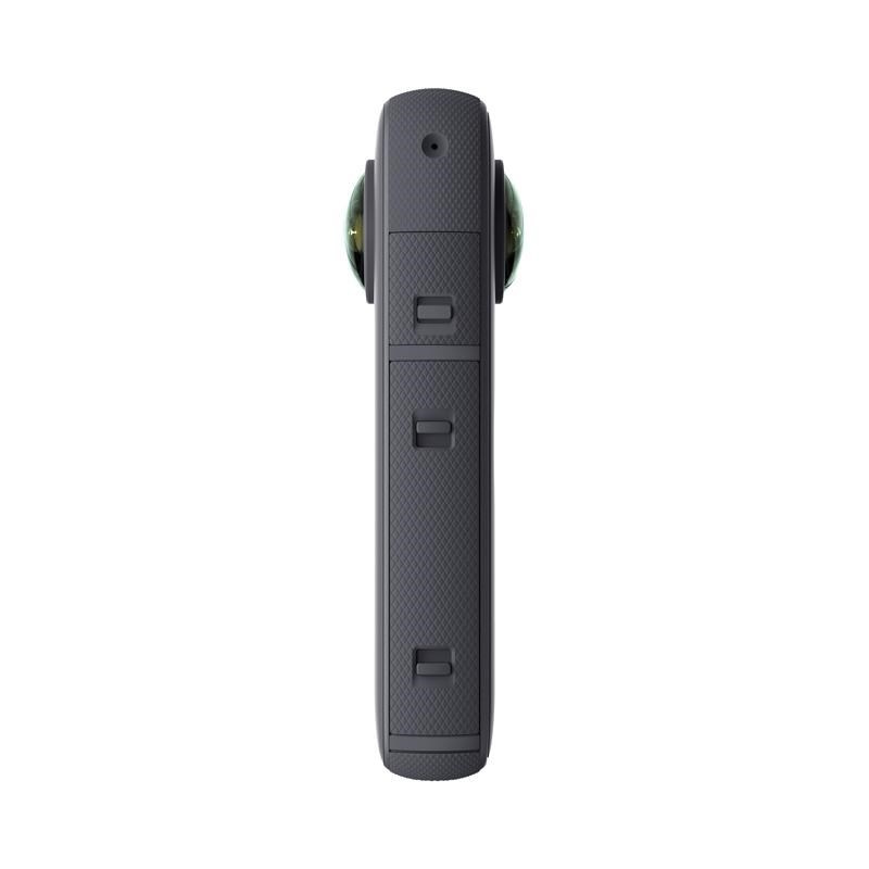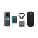 Akční outdoorová 360 kamera Insta360 ONE X2, robustní konstrukce, vodotěsná do 10 m, dvojice 360° objektivů s celkovým rozlišením 5.7K a 30 fps, kodek H.265, dotykový displej, čtyři mikrofony pro 360 audio, automatické stříhání a úpravy v mobilní aplikaci Insta360 ONE, ShotLab, SteadyCam režim, stabilizace FlowState, ovládání hlasem. 80 minut natáčení. Hmotnost 149 g, 46,2 x 113 x 29,8 mm.