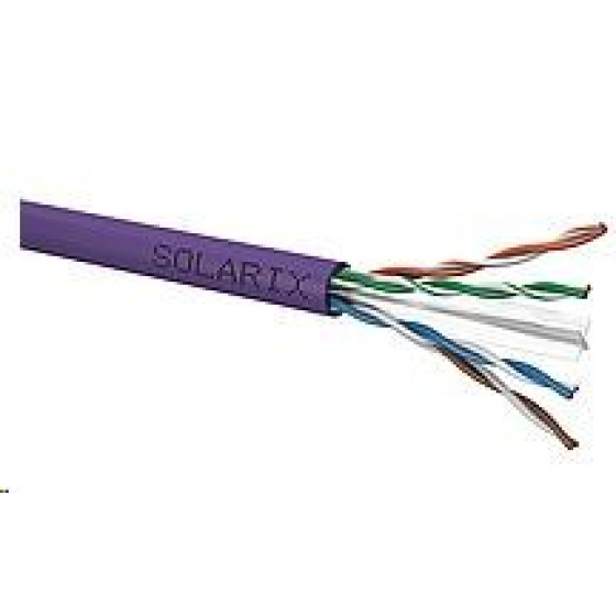 Tento instalační kabel z produktové řady Solarix - kategorie 6 s označením SXKD-6-UTP-LSOH je vysoce kvalitní kabel určený pro horizontální rozvody strukturované kabeláže, který bez problémů splňuje a rovněž převyšuje požadavky specifikované v mezinárodních standardech ANSI/TIA 568, ISO/IEC 11801 a EN 50173 pro kategorii 6 a třídu vedení Class E, včetně všech nejnovějších dodatků. Kabely Solarix - kategorie 6 jsou dodávány ve stíněné i nestíněné verzi s různým typem pláště - tj. PVC (třída reakce na oheň Eca), LSOH (třída reakce na oheň Dca s2 d2 a1) nebo UV stabilní PE (třída reakce na oheň Fca). Vodiče těchto kabelů jsou vyrobeny z velmi kvalitního měděného drátu o velikosti AWG 23. Jednotlivé páry jsou odděleny plastovým křížem. Stejně jako ostatní kabely Solarix, je i kabel SXKD-6-UTP-LSOH značen metráží po 1 m v rozsahu od 0 do 500 m. Kabel je dodáván na vysoce pevné dřevěné cívce, na které jsou uvedeny všechny nezbytné produktové informace, včetně čárových kódů, výrobní šarže, popisu a nejdůležitějších technických parametrů.