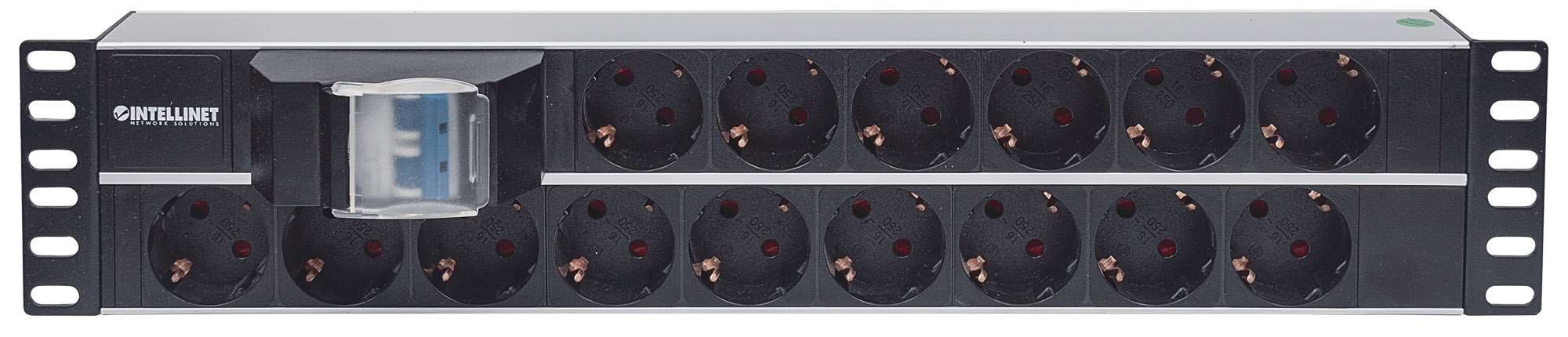 Popis Intellinet 19" 2U Rackmount 15-Way Power Strip - German Type, rozvodný panel, 15x DE zásuvka, 3m kabel