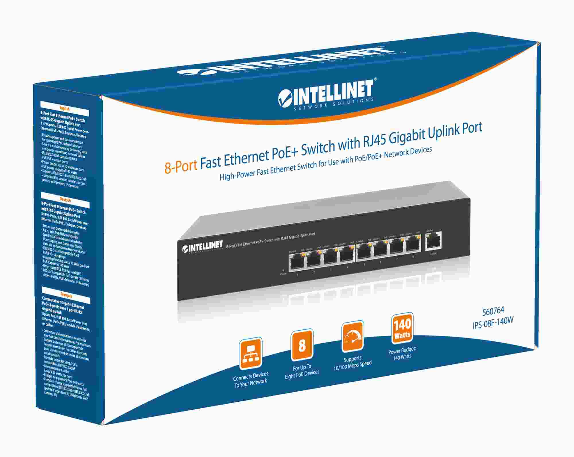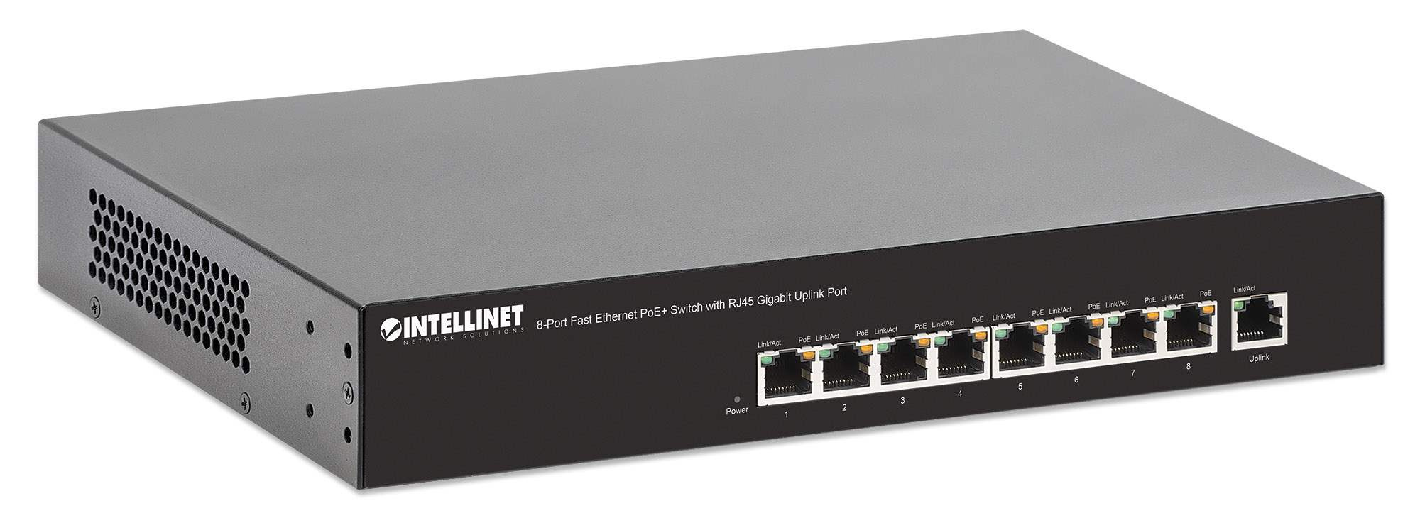 Intellinet 8-Port 10/100 PoE+ Switch, 66W PoE budget