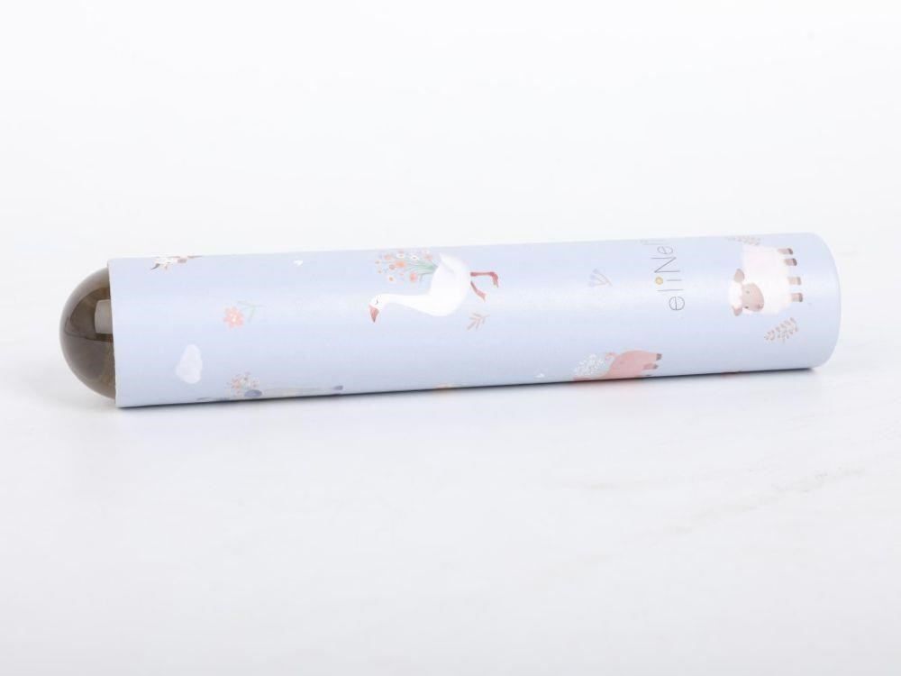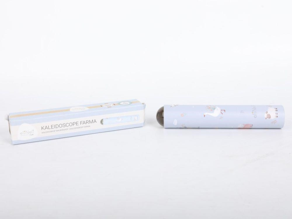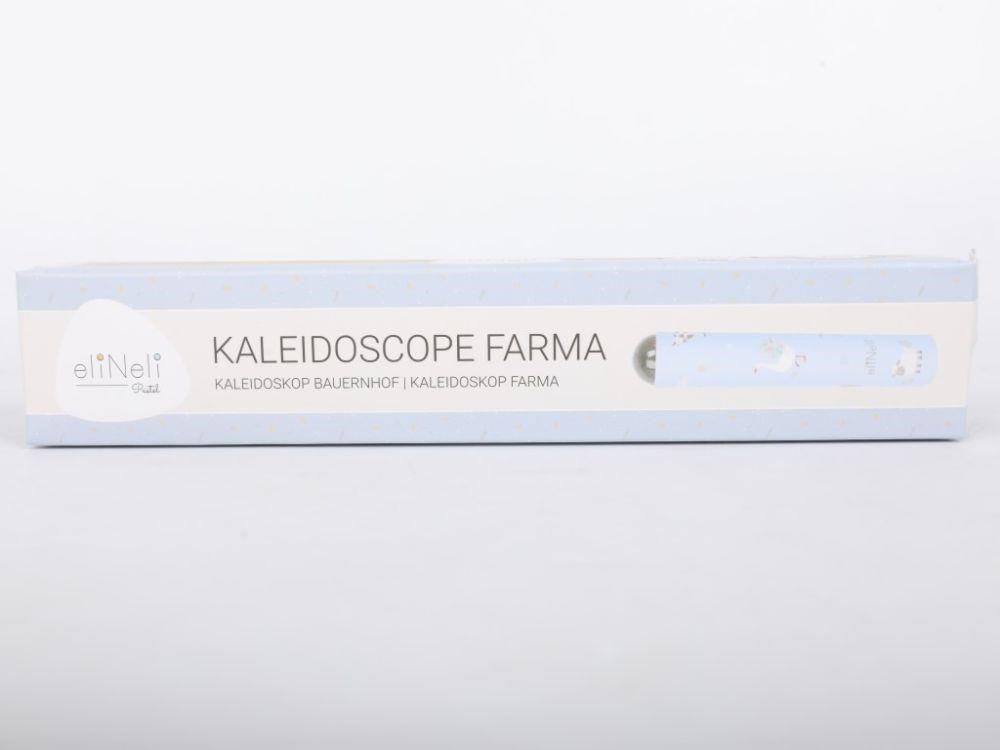 Kaleidoskop v neutrální pastelové barvě, s motivem zvířátek z farmy, v jejich skutečné, reálné podobě, je krásným dárkem pro zvídavé děti. Stačí krasohledem lehce otáčet a uspořádání sklíček a tedy i obrazce se budou měnit a přetvářet. Krasohled, optický přístroj, který pomocí sklíček a zrcadel vytváří kouzelné obrázky, rozvíjí u dětí fantazii a kreativitu..