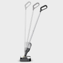 Podlahová myčka FC 2-4 je skvělým pomocníkem při úklidu díky své samonosné konstrukci a lehké váze pouhých 2,2 kg. Díky automatickému zapínání a vypínání je ovládání velmi intuitivní – stačí jednoduše zatáhnout za rukojeť čističe směrem dozadu a myčka se sama spustí. V jediném kroku pak snadno odstraní suché i mokré každodenní nečistoty. Baterie vystačí až 20 minut čištění, což je dostačující pro úklid plochy o rozloze cca 70 m2. Válec myčky se po aktivaci automaticky navlhčí vodou z nádrže na čerstvou vodu, což zajišťuje rovnoměrné a efektivní čištění tvrdých podlah vždy čistou vodou. Myčka umožňuje čištění až po okraj a díky integrovaným vlasovým filtrům lze snadno sbírat i vlasy a další nečistoty. Integrovaná hygienická nádrž na špinavou vodu zamezuje kontaktu s nečistotami a po použití ji lze snadno vyjmout a vyčistit. Přiložená výměnná baterie 4V od Kärcher Battery Power je kompatibilní se všemi 4V zařízeními této značky.