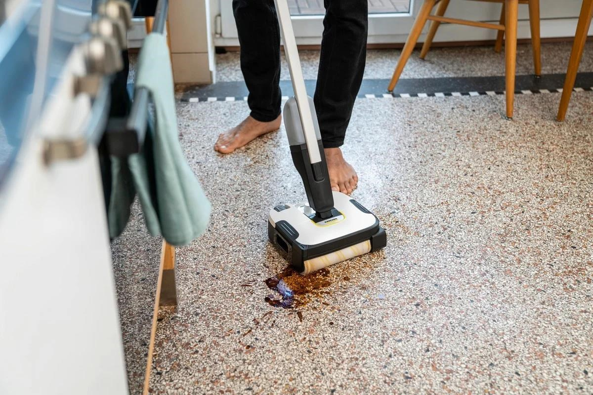 ** Čistič podlah Kärcher zkracuje dobu čištění až o 50 %, protože běžné nečistoty z domácnosti lze odstranit z tvrdých podlah v jediném kroku, aniž by bylo nutné před vytíráním vysávat.