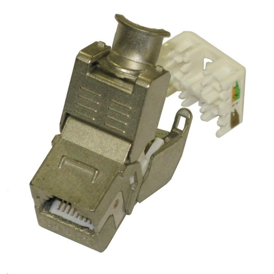 Keystone Cat6A, STP, samozařezávací se zaklapnutím, stříbrný Lze zařezat kabely s vodiči o průměru AWG26-22, průměr s izolací 0,4-0,6 mm..Více
