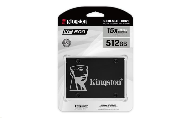 KC600 značky Kingston je SSD s plnou kapacitou navržený pro pozoruhodný výkon a optimalizován k zajištění schopnosti funkčního systému reagovat s neuvěřitelnou dobou bootování, nahrávání a přenosu. Dodáván je ve velikosti 2,5“ s využitím rozhraní SATA Rev 3.0 se zpětnou kompatibilitou. KC600 využívá nejnovější technologii 3D TLC NAND, zatímco současně podporuje plně zabezpečenou sadu, která zahrnuje 256bitové hardwarové kódování AES, TCG Opal a eDrive. Má rychlosti čtení/zápisu až 550/520 MB/s* k účinnému ukládání Vašich dat až do velikosti 2 TB.** Dostupný je v sadě, která Vám poskytne vše, co potřebujete pro hladkou a snadnou instalaci a aktualizaci Vašeho stolního nebo přenosného počítače.