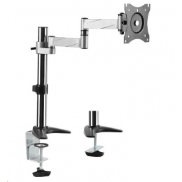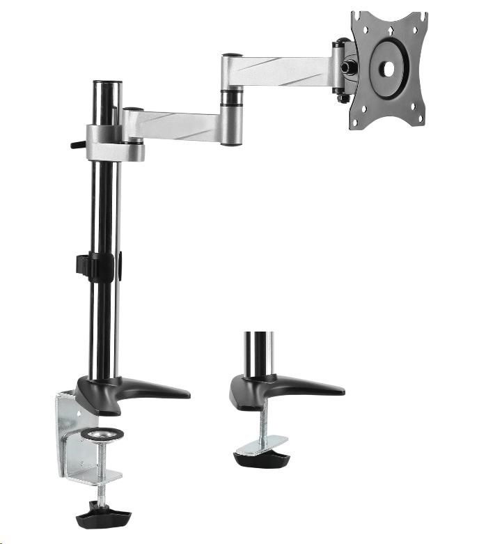 Technické údaje: nosnost 8kg plně nastavelný - 3D polohování monitoru na monitory s úhlopříčkou 13" až 27" podpora VESA 75x75 a 100x100 otáčení do stran +/- 180° náklon +/- 35° rotace obrazovky +/- 180° - funkce PIVOT nastavení vzdálenosti od nosníku 0mm až 396mm nastavení výšky max. 364mm uchycení na stolové desky o průměru 10mm až 85mm dva typy uchycení na stolové desky - svěrák na okraj stolu nebo skrz desku kamkoliv do prostoru krásný vzhled - chromový nosník, ramena ve stříbrném provedení materiál hliník vynikající kvalita, spolehlivost a dlouhá životnost instalační materiál součástí balení záruka 3 roky.
