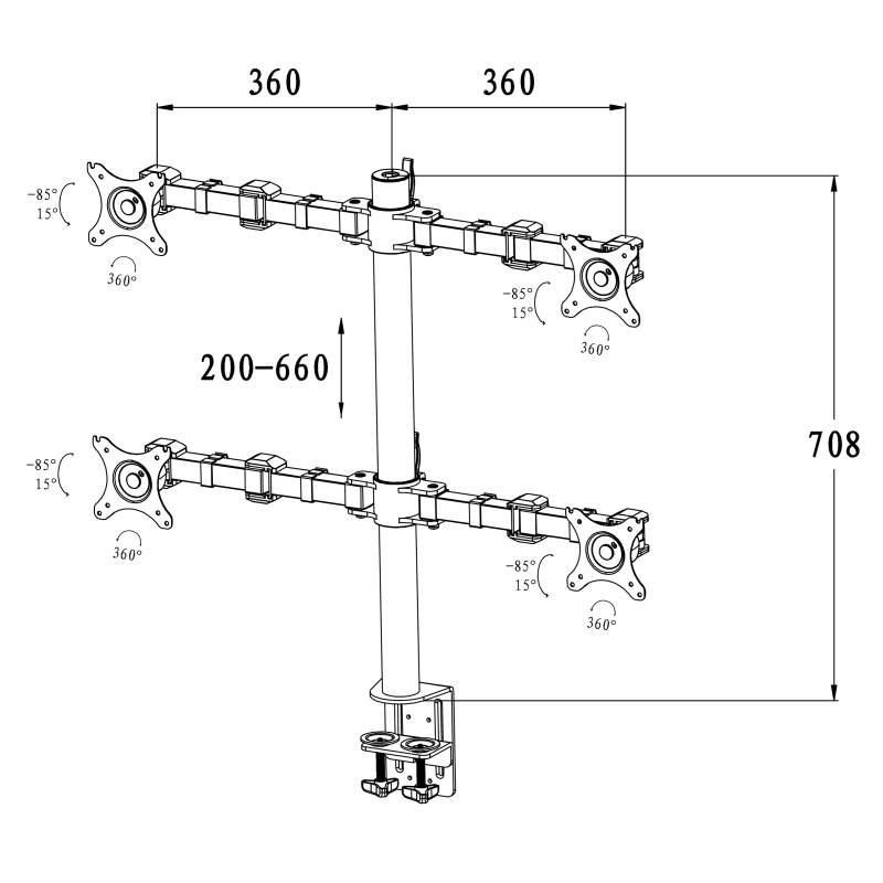 Stolní držák na 4 monitory 10-30", nosnost 40kg, VESA 75x75 a 100x100.Více