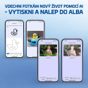 Foťák je propojený s chytrou aplikací v češtině, takže jeho ovládání zvládnou i menší děti. Aplikace toho ale umí mnohem více. Kromě tisku fotek, poznámek nebo samolepek přímo z telefonu zvládá i skenování ručně psaných zápisků, překlady textů z obrázků, AI vybarvování, tvorbu obrázků pomocí umělé inteligence nebo převod fotografií do animovaného stylu. Stačí pár kliknutí a děti si samy vytvoří obrázky přesně podle své představivosti.