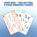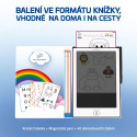 Tabulka i šablony jsou uložené v chytrém obalu ve tvaru knížky. Děti si tak sbalí celý set a mají ho kdykoli připravený na tvoření doma i na cestách.