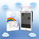 Velká plocha tabulky nabízí spoustu místa pro kreslení i zapisování nápadů, a přitom zůstává šetrná k dětským očím. Displej nebliká, nevyzařuje modré světlo a nenamáhá zrak ani při delším používání. Celý set, tabulka i šablony, je navíc uložený v praktickém obalu ve tvaru knížky, díky kterému zůstane všechno pěkně pohromadě a děti si tak mohou vzít zábavu kamkoliv s sebou.