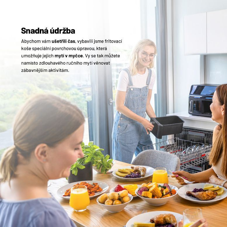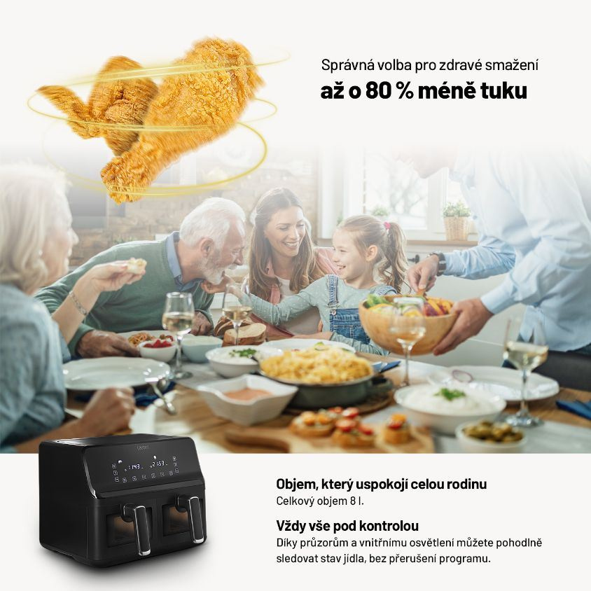 Horkovzdušná fritéza s dvěma koši, celkový objem 8 l, individuální nastavení obou košů zvlášť, možnoVíce