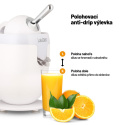 Funkce proti odkapávání zajišťuje, že šťáva odtéká přímo do sklenice nebo do zásobníku. Okolí citrusovače tak zůstává čisté.