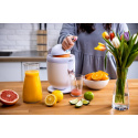Elektrický citrusovač je vybaven funkcí Anti Drip proti odkapávání, na lince tedy nezůstává nepořádek. Při odšťavňování odtéká šťáva přímo do sklenice, případně dochází k jejímu hromadění v zásobníku o kapacitě 0,6 l. Celý odšťavňovací proces je velice efektivní a rychlý díky jedinečnému tvarování kuželu a nastavení páky. Uživatele přístroje jistě potěší jeho snadná údržba, kdy stačí odnímatelné části vložit do myčky.