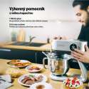 Rozehrajte tu pravou kuchyňskou symfonii díky dokonale vyladěnému kuchyňskému robotu Lauben Kitchen Machine 1300SG. Jeho vysoký výkon 1 300 W si hravě poradí i s nejtužším těstem, do mísy z prémiové nerez oceli o kapacitě 5,5 l se vejde opravdu hodně a ingredience můžete při přidávání rovnou vážit pomocí integrované váhy. Víko mísy zajišťuje, aby suroviny zůstaly jen v míse a plnicí otvor ve víku slouží k bezpečnému přidávání ingrediencí. Mísa je navíc pro lepší kontrolu osvětlena. Vše potřebné nastavíte pohodlně pomocí dotykového displeje. Robot je vybaven bohatým příslušenstvím, které snadno vyměníte pomocí pop-up systému. Bezpečný provoz zajišťují protiskluzové nožičky a plynulý přechod rychlostí, kdy se nikde nic neklepe. Bonusem je prémiový design a inspirativní kuchařka v balení. Ovládání přístroje zvládne každý, ale pro jistotu máte k dispozici video tutoriál.