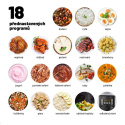 Jeden přístroj, nespočet možnostíLauben Multi Cooker 18SB je multifunkční tlakový hrnec, který vám díky 18 přednastaveným programům ušetří v kuchyni spoustu času a námahy. Kromě tlakového hrnce, slow cookeru, nebo rýžovaru, nahradí i vařič vajec, parní hrnec, jogurtovač, nebo ohřívačku. Ušetříte spoustu místa v kuchyni a připravíte širokou paletu pokrmů. Hrnec se snadno ovládá pomocí přehledného dotykového displeje, který je kompletně v češtině. Hlavní nádoba má dostatečnou kapacitu 6 litrů, je z nepřilnavého materiálu a lze mýt v myčce nádobí. Multicooker nabízí i funkci odloženého startu nebo udržování teploty. Navíc je kompaktní, a vy si tak můžete dopřát rychlé, zdravé a bezpečné vaření nejen doma, ale i na chatě nebo na dovolené. Lauben Multi Cooker 18SB je ideálním pomocníkem do kuchyně právě pro vás, pokud chcete mít na talíři vždy perfektní výsledek, ale nechce se vám obětovat hodiny strávené u sporáku, nebo spoustu peněz do kuchyňského vybavení.