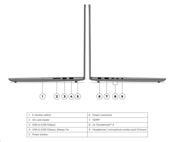USB Type-C, HDMI, 3.5mm Jack, USB 3.2 Gen 1, SD karta