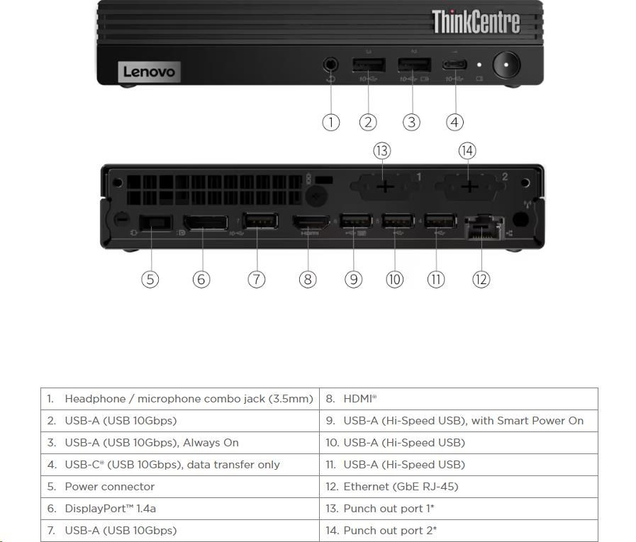 Popis LENOVO PC ThinkCentre M75q Gen 5 Tiny - AMD Ryzen™ 3 8300GE,8GB,256SSD,HDMI,DP,AMD Radeon™ 740M,W11P,3Y Onsite