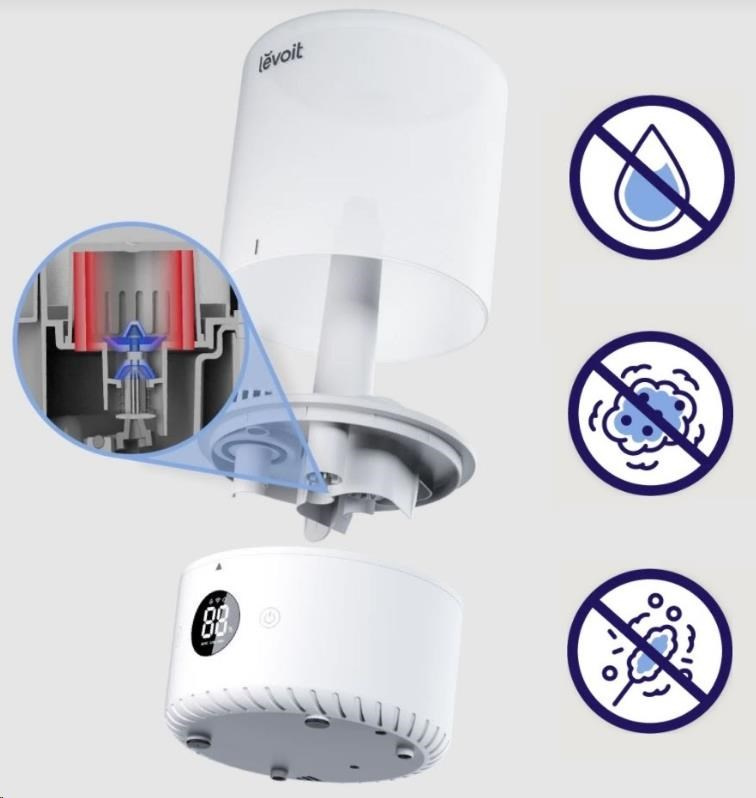 Konstrukčně byl použitý hydraulický ventilátor a provoz je díky němu velice tichý a nebude vás rušit ani při spaní. Budete moci nerušeně snít a zvlhčovač Levoit Dual 200S Smart se postará o kvalitu a vlhkost vzduchu v místnosti podle vašich představ.