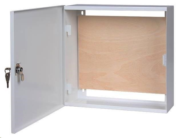 Univerzální uzamykatelná skříň, montáž na povrch osazená montážní deska - překližka 290 x 230 x 8mm.Více