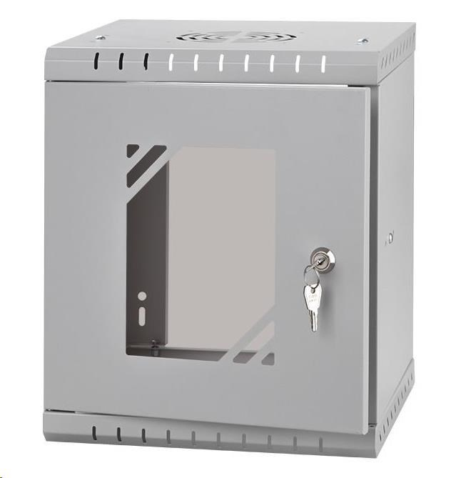 Popis LEXI-Net 10" nástěnný rozvaděč Basic 6U 292x300, skleněné dveře, bez zad, svařovaný, šedý