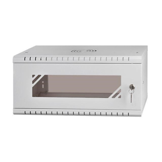 Popis LEXI-Net 19" nástěnný rozvaděč Basic 4U 520x450, skleněné dveře, bez zad, rozložený, šedý