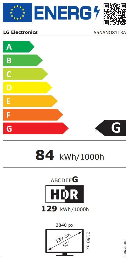 Popis LG 55NANO81T3A 55" TV, 4K Ultra HD, NanoCell, Direct LED, webOS, WiFi, Bluetooth, HDMI, HDR