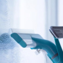 Integrovaná nádržka dopraví čisticí prostředek přesně tam, kde je potřeba. Mimořádně měkký, pratelný čisticí návlek odstraní nečistoty důkladně – i na citlivých površích, jako jsou zrcadlové skříňky, skleněné plochy či sprchové zástěny. Poté se postará kvalitní gumová lišta o lesk bez šmouh, zatímco špinavá voda odteče do sběrné nádržky – bez kapek na podlaze.