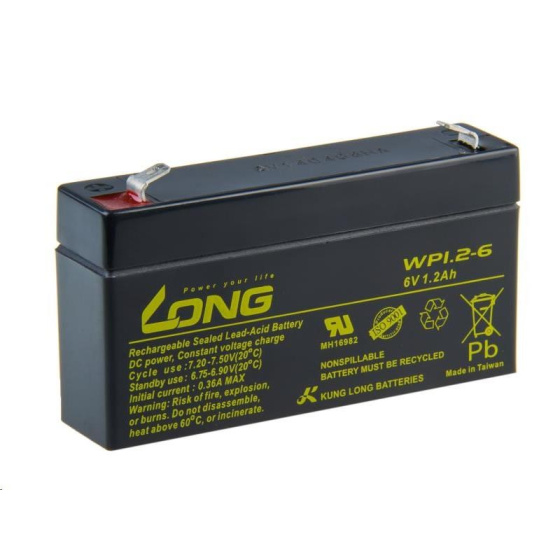 Popis Long 6V 1,2Ah olověný akumulátor F1