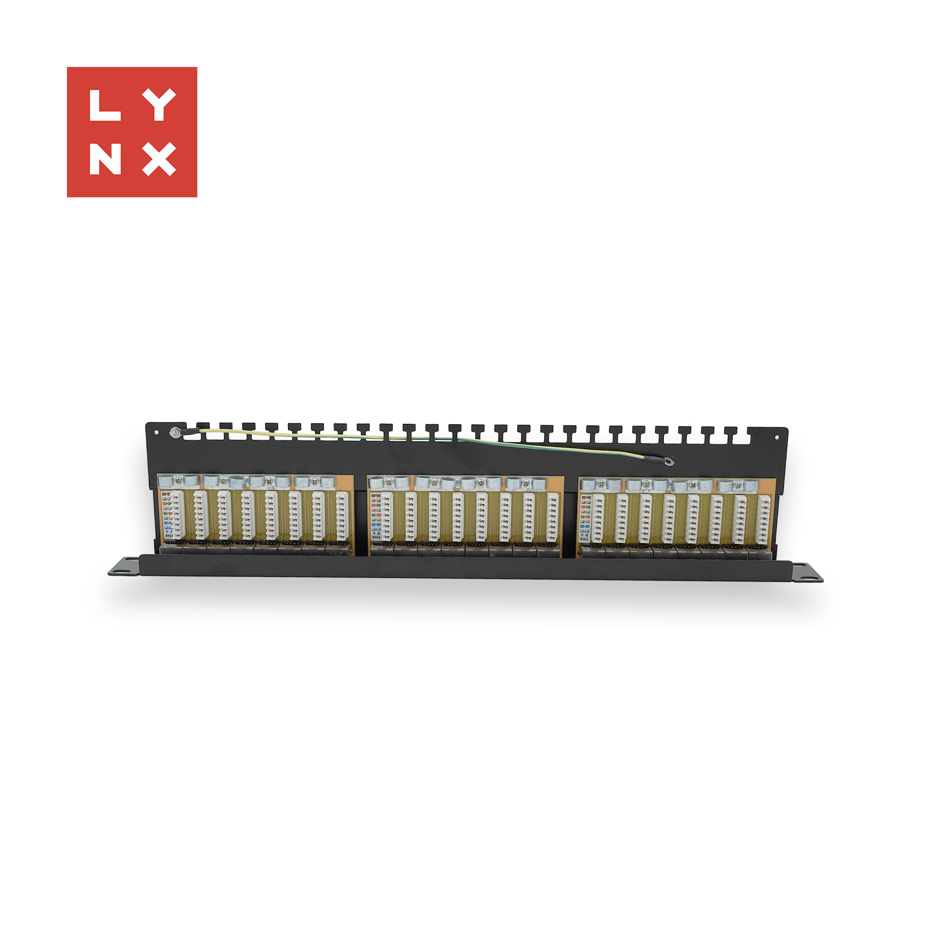 Popis LYNX 19" patch panel 24-port, STP Cat6a, 50µ, stíněný, černý