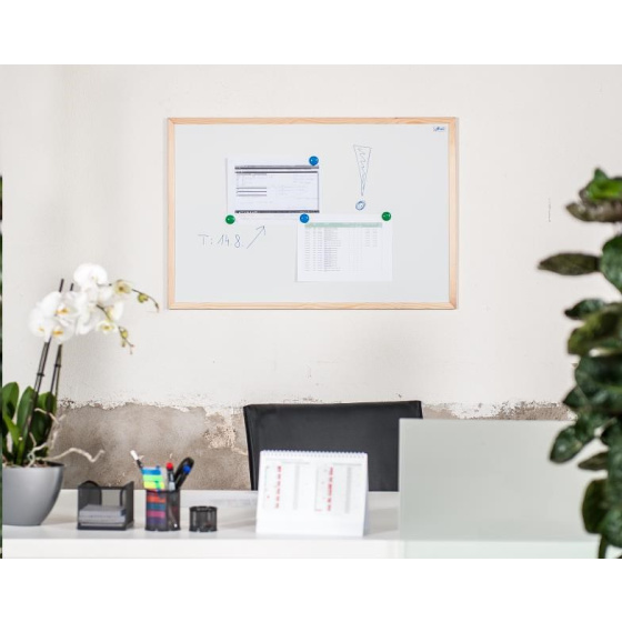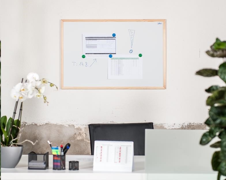 Magnetická tabule AVELI má bílý lakovaný povrch s dřevěným rámem, který tabuli poskytuje stabilitu a zabraňuje tak případné deformaci /kroucení / tabule. Na tabuli je možné psát stíratelným fixem.