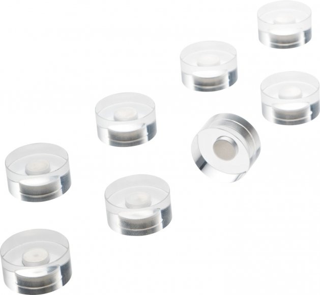 Designový magnet Magnetoplan Acryl s neodymovým extra silným jádrem. Přídržná síla cca 1,6 kg. Průměr 20mm. Známka ochrany průmyslového designu..