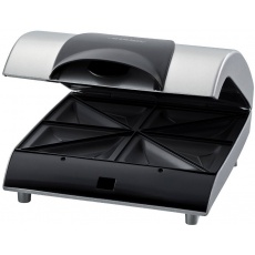 Toustovač - 3v1, s vyjímatelnými plotýnkami, na 2 tousty, trojúhelníkové plotýnky, s nepřilnavým povrchem, plotýnky vhodné do myčky, součástí balení plotýnky vhodné na vafle, na grilování, s ochranou proti přehřátí, uzamykatelný, tepelně izolovaná rukojeť součástí, příkon 700 W, nerezový plášť, černá a nerezová barva.