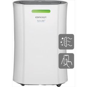 Odvlhčovač a čistička vzduchu, odvlhčovací kapacita 12 l/den, kapacita nádrže na vodu 2,5 l, ničí viry a bakterie, dotykový displej, automatický provoz, dva způsoby odvodu vody, indikátor plné nádrže, senzor vlhkosti vzduchu, časovač, noční režim, režim na sušení prádla. Hmotnost 11 kg, kolečka, bílá barva, čistý design..