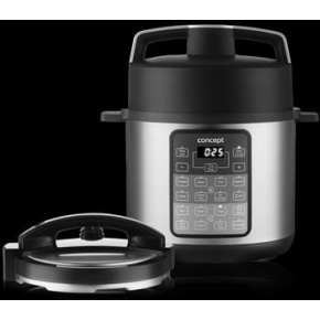 Tlakový hrnec o objemu 5 l, počet programů: 9, kuchařka v balení, možnost manuální úpravy, ovládání ventilu jednou rukou, počet ventilů: 1, příkonem 900 W, udržení teploty, displej, automatické vypnutí, regulace teploty a automatické programy.