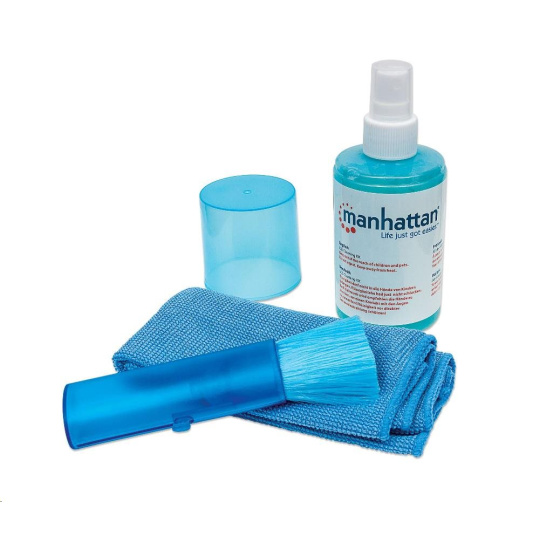 The Manhattan LCD Cleaning Kit gently cleans and removes dirt, fingerprints and smudges from most LCD surfaces, making it ideal for use with flat panel displays, televisions, notebook computers and other electronics. A soft, synthetic brush gently eliminates excess dust and debris without scratching. The bristles retract into the handle to keep them clean and protected. The non-aerosol cleaning solution safely and thoroughly removes fingerprints and smudges without harsh solvents or abrasives. A soft, lint-free microfiber cloth gently cleans, dries and polishes for a clear, non-streak finish.