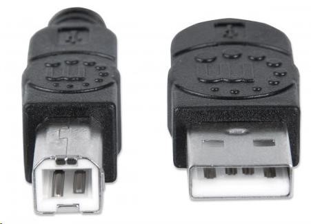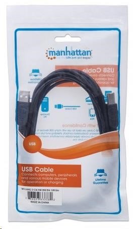 Manhattan Hi-Speed USB 2.0 Device Cables easily connect USB peripherals and accessories with desktop and notebook computers. Ideal for use with many USB external enclosures, hubs and other hot-swap, plug-and-play devices, Manhattan Hi-Speed USB 2.0 Device Cables support data transfer rates up to 480 Mbps on Windows and Mac systems for fast, reliable transmissions. Gold-plated contacts, shielding and fully molded boots with strain relief help provide dependable connections, maximum conductivity and minimal data loss with reduced EMI interference.