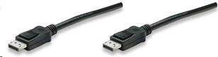 High-definition performance for personal computing MANHATTAN DisplayPort Cables provide a single-cable solution that delivers both high-definition digital audio and video signals between desktop and notebook computers and an output device. With 10.8 Gbps bandwidth (1080 Mbps), DeepColor and 24-bit, 8-channel uncompressed audio capability, the 20-pin connector is small, compact and ideal for use with DisplayPort-equipped computers, flat-panel displays, slim-profile devices and many consumer electronics including Blu-ray players and game consoles. Full foil and braided shielding, molded boots with strain relief, protective PVC jackets and gold-plated connections help MANHATTAN DisplayPort Cables provide maximum conductivity and clear, crisp signal transmissions with reduced EMI interference and distortion. •DisplayPort 20-pin male to DisplayPort 20-pin male latching connections •Delivers high-bandwidth, digital audio/visual signals from PC to display and other DisplayPort-enabled devices — up to 1080p resolution •Supports HDMI and DVI signal pass-through •Fully shielded to reduce EMI and other interference sources •Plug and Play for box-to-box applications •Molded PVC boot •Lifetime Warranty •Meets or exceeds existing DisplayPort 1.1 standards •Supports 10.8 Gbps data rate, 2560x1600 resolution (WQXGA) and HDCP •(2) DisplayPort 20-pin male with latches •Shielding: aluminum and Mylar braid •28 AWG Package Contents •DisplayPort Monitor Cable.
