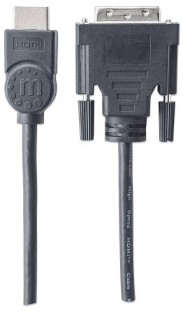 MANHATTAN HDMI to DVI Cables help deliver the brightest, most accurate colors and sharpest detail when connecting high-definition televisions, LCD and plasma displays, digital satellite receivers, DVD players, digital projectors and other DVI- or HDMI-equipped display devices. MANHATTAN HDMI to DVI Cables are engineered and constructed of quality materials to deliver dependable transmissions in digital video applications. Full foil and braided shielding, molded boots with strain relief, protective PVC jackets and gold-plated connections help provide maximum conductivity and clear, crisp signal transmissions with reduced EMI interference and distortion.