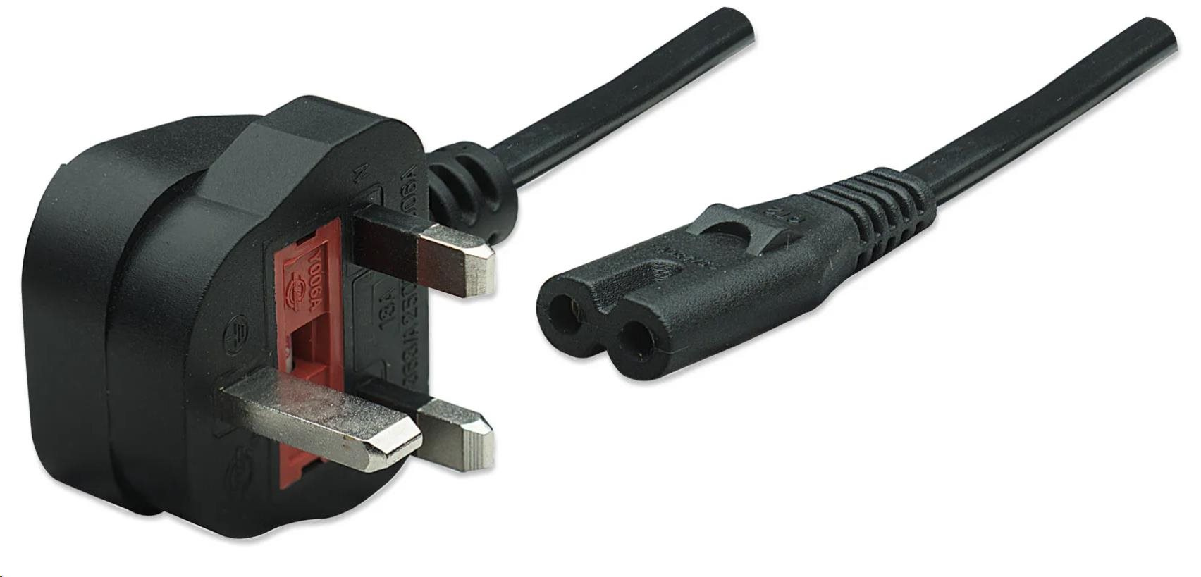 Power Cord UK 3-pin - C7 to BS 1363 (UK plug), 1.8 m (6 ft.), Black