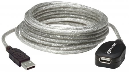 Use the MANHATTAN Hi-Speed USB Active Cable to connect a computer USB port to a USB device almost anywhere in the room. Up to three, daisy-chainable cable extensions provides a convenient, 15 m (50 ft.) connection. MANHATTAN Hi-Speed USB Active Cable with built-it repeater is fully-compliant with USB 1.1 and Hi-Speed USB specifications to help devices operate at maximum performance. Plug and Play capability, Windows7/8/Macintosh versatility and no external power or driver requirements help provide greater flexibility in computer and peripheral placement and office layout.