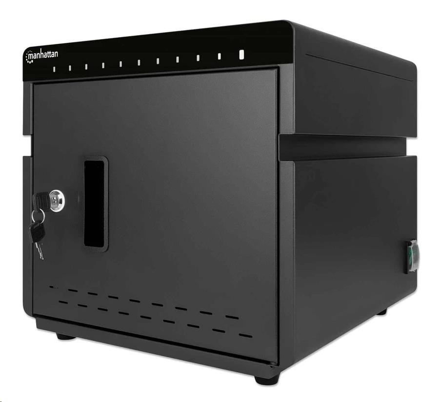 Thieves and vandals don’t stand a chance against the sturdy, durable metal housing of this Desktop Charging Cabinet. Lock it securely with the included 2-piece key set and give access only to authorized personnel. A built-in fan and ventilation slots dissipate heat and keep all devices cool. Rubber feet prevent the Cabinet from slipping on any surface.