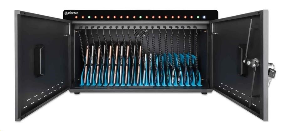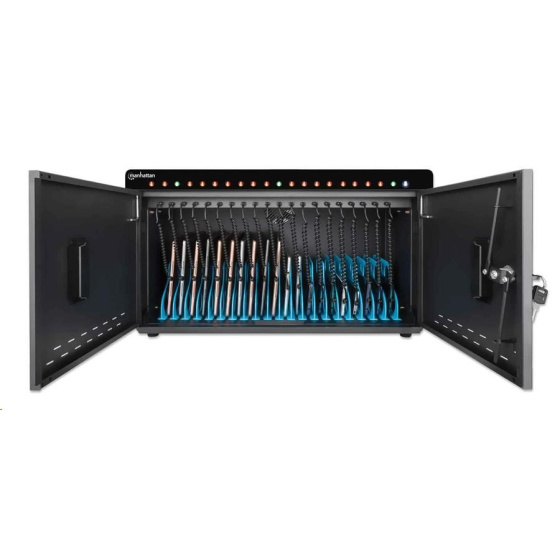Visitors, guests and employees bring their mobile devices to all sorts of venues. Give your people a way to charge the drained batteries of their smartphones or tablets with the 20-Port Desktop Charging Cabinet - 360 W from Manhattan. It's the ideal charging solution for restaurants, schools, gyms, doctor’s offices, universities, hotels, car rental agencies and more.