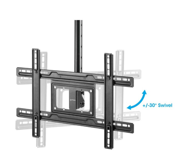 Vylepšete úhel pohledu, když je místo na stěně a podlaze omezené nebo není možné instalovat televizor nízko nad podlahou. Tento stropní držák na televizor Manhattan pojme LCD, LED nebo plazmový displej o úhlopříčce 37" až 80" a hmotnosti až 50 kg. Jeho práškově lakovaná, odolná ocelová konstrukce zajišťuje bezpečnou a spolehlivou instalaci nad hlavou.